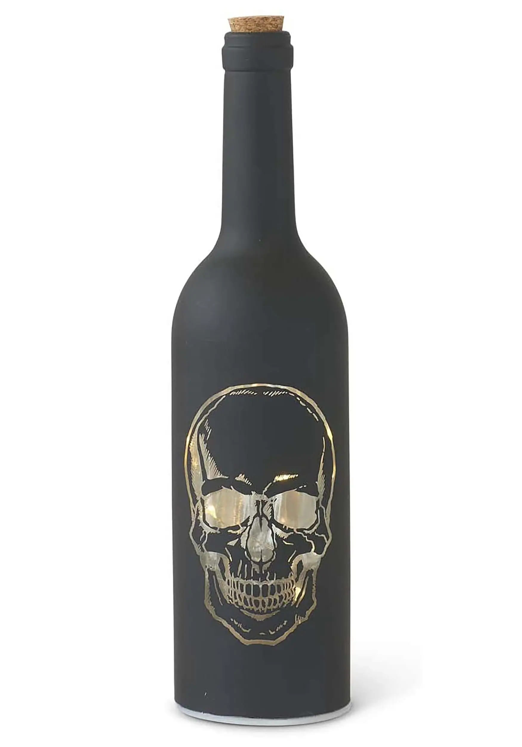 This is a 11 Inch Matte Black Halloween LED Skull Bottle.