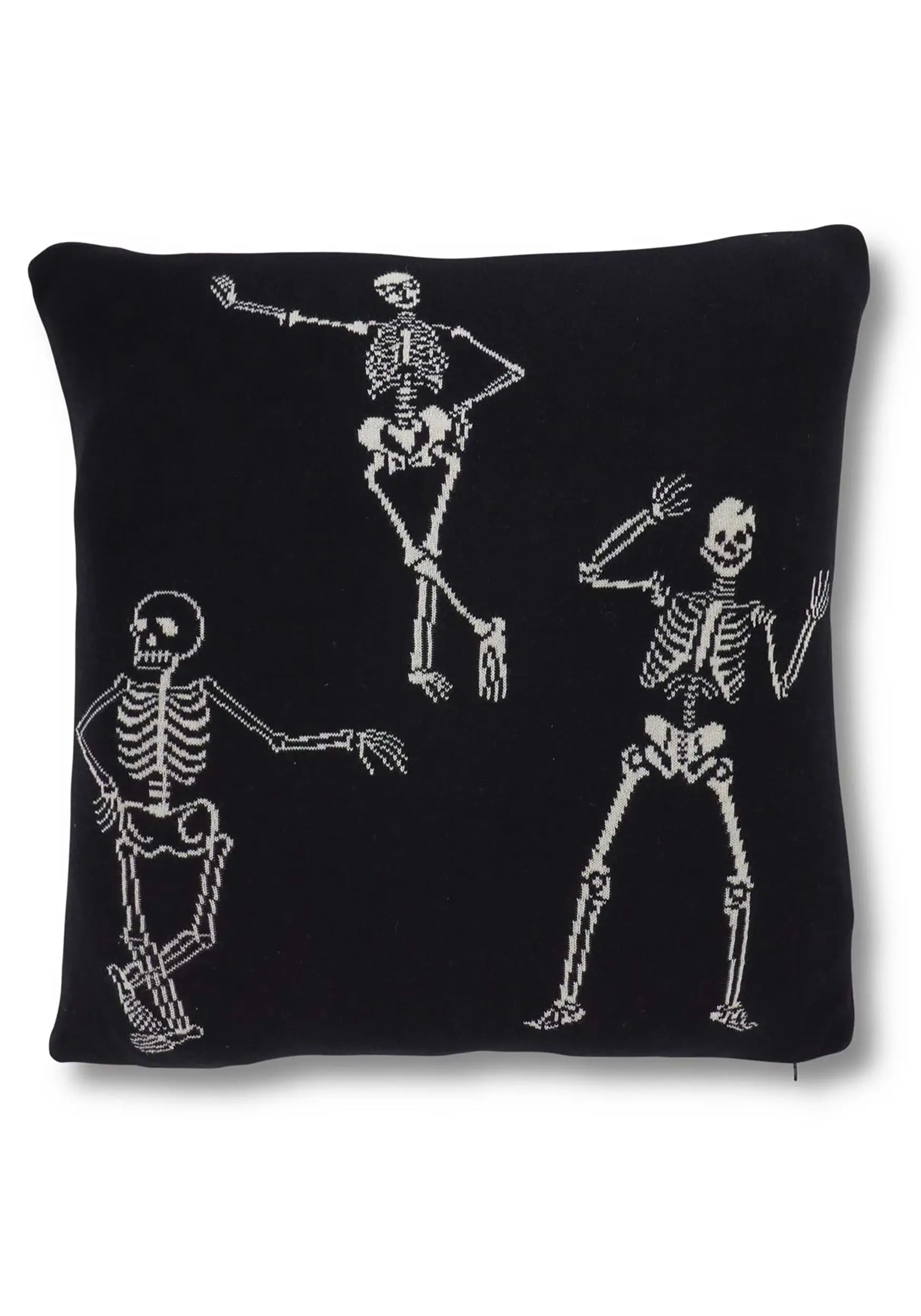 This is a 20″ Cotton Knit Black & Cream Skeleton Pillow.