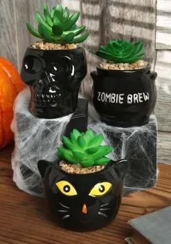 This is Cauldron, Cat & Skeleton Halloween Succulent Planter Set