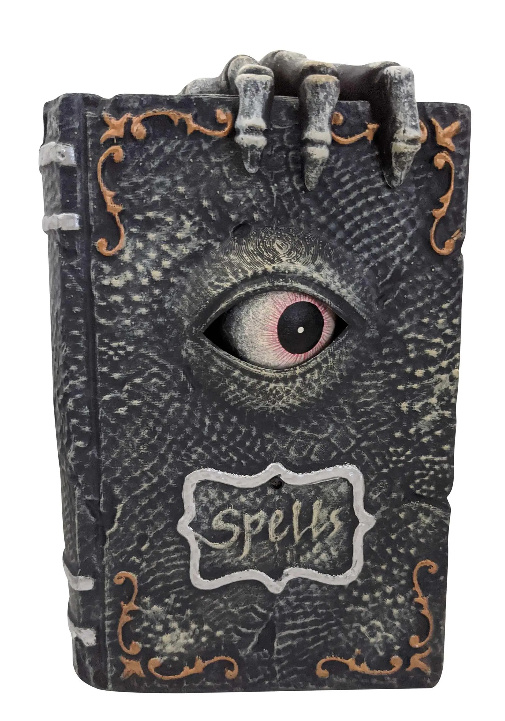 - Animated book, eyeball lights up red and speaks, “who disturbs my slumber?”