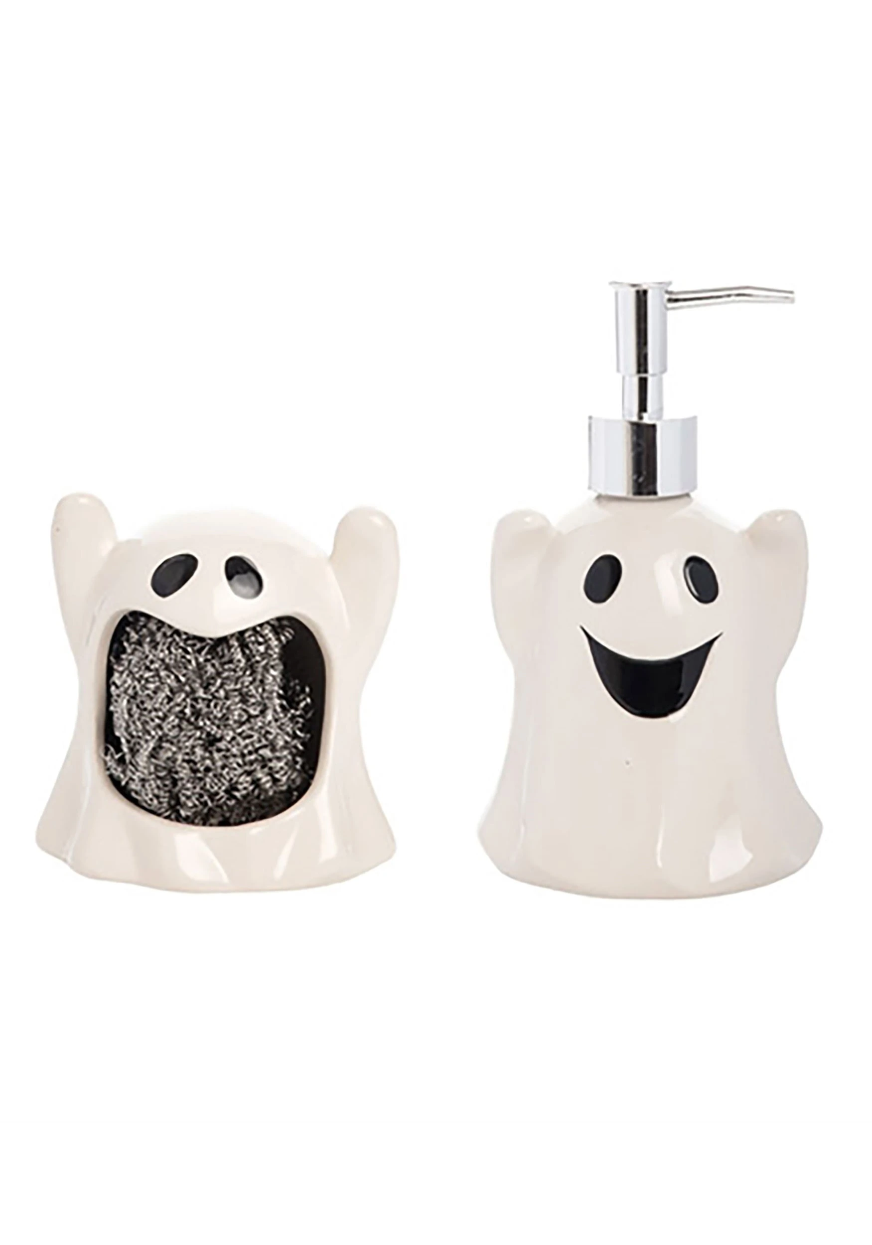 This is a Ghost Sponge Holder and Soap Dispenser Set.
