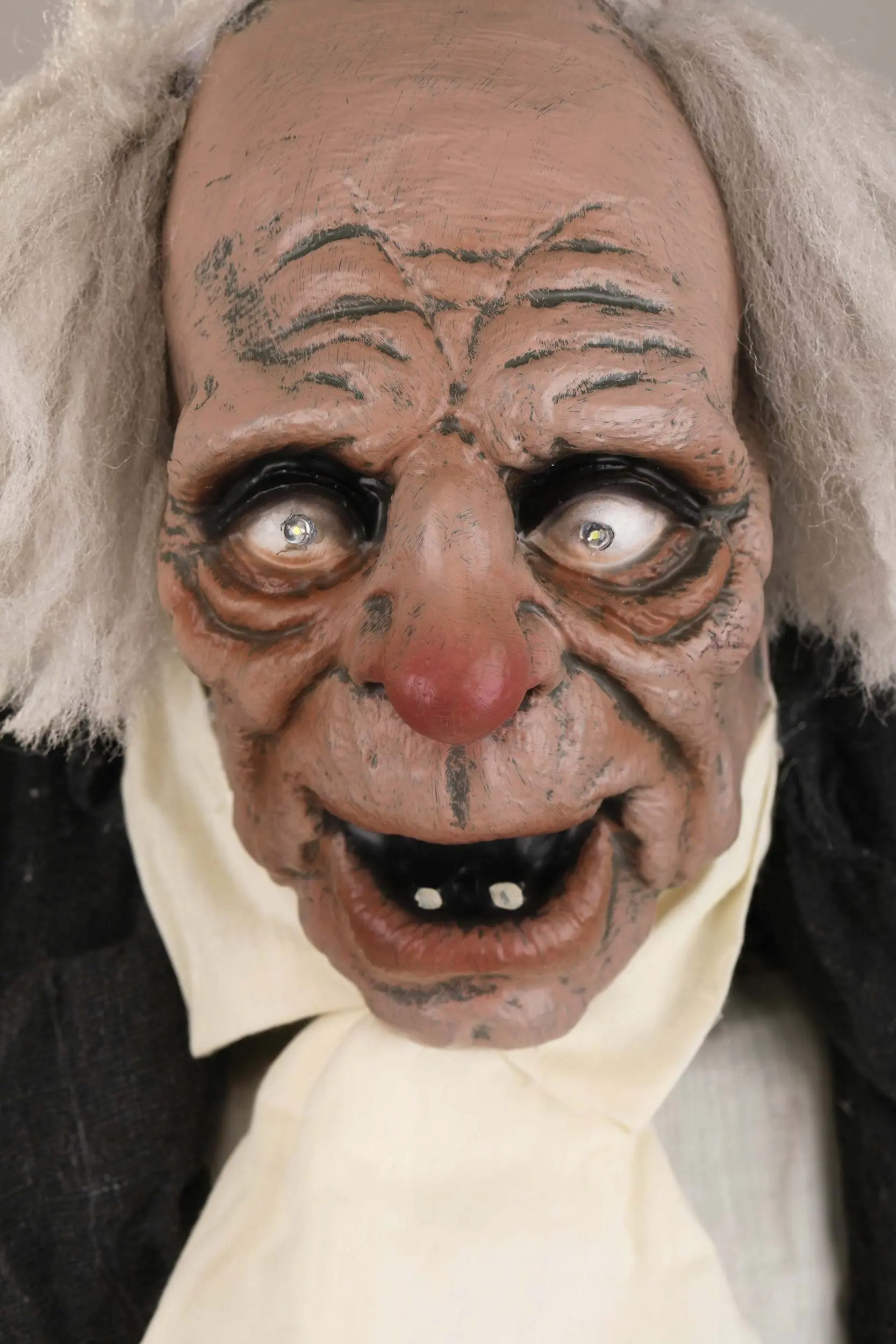 This is an exclusive Life Size Animated Old Man Greeter Decoration.