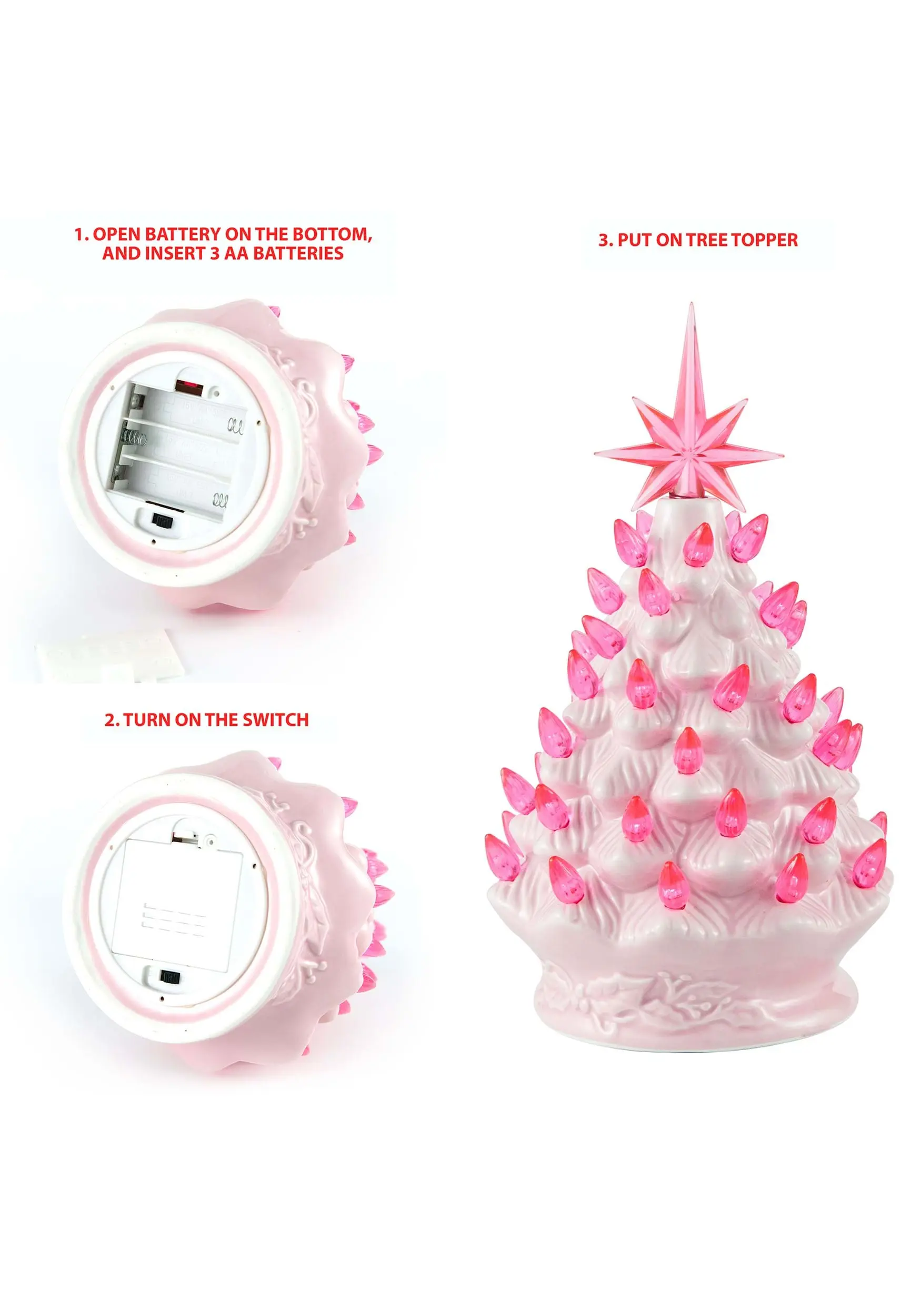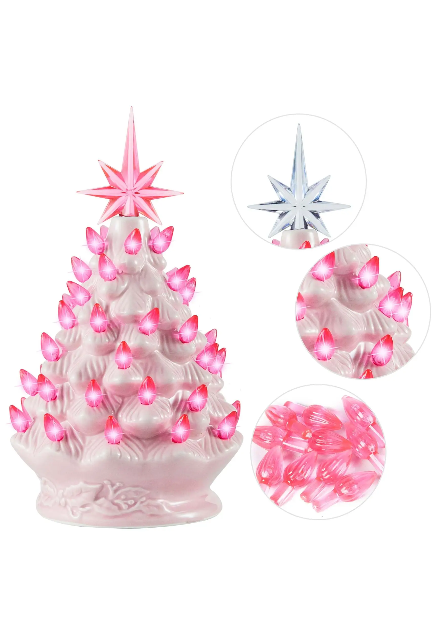 - Molded ceramic tree, plastic stars & bulbs