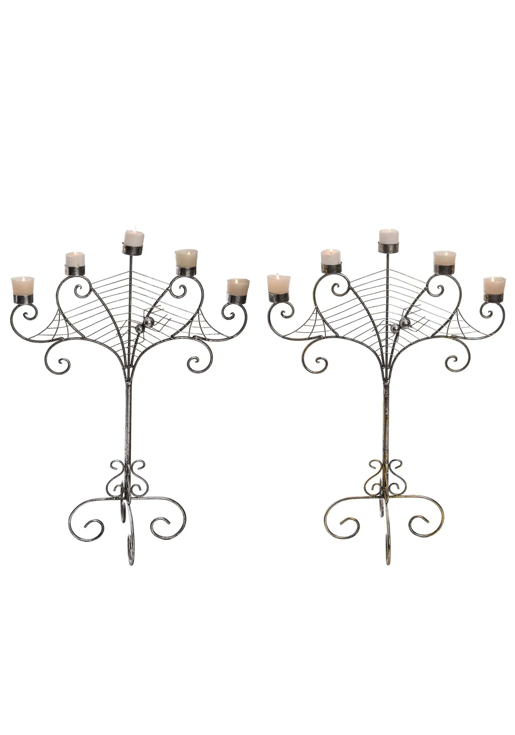 This is a 25 Inch Silver Spider Web Candelabra.