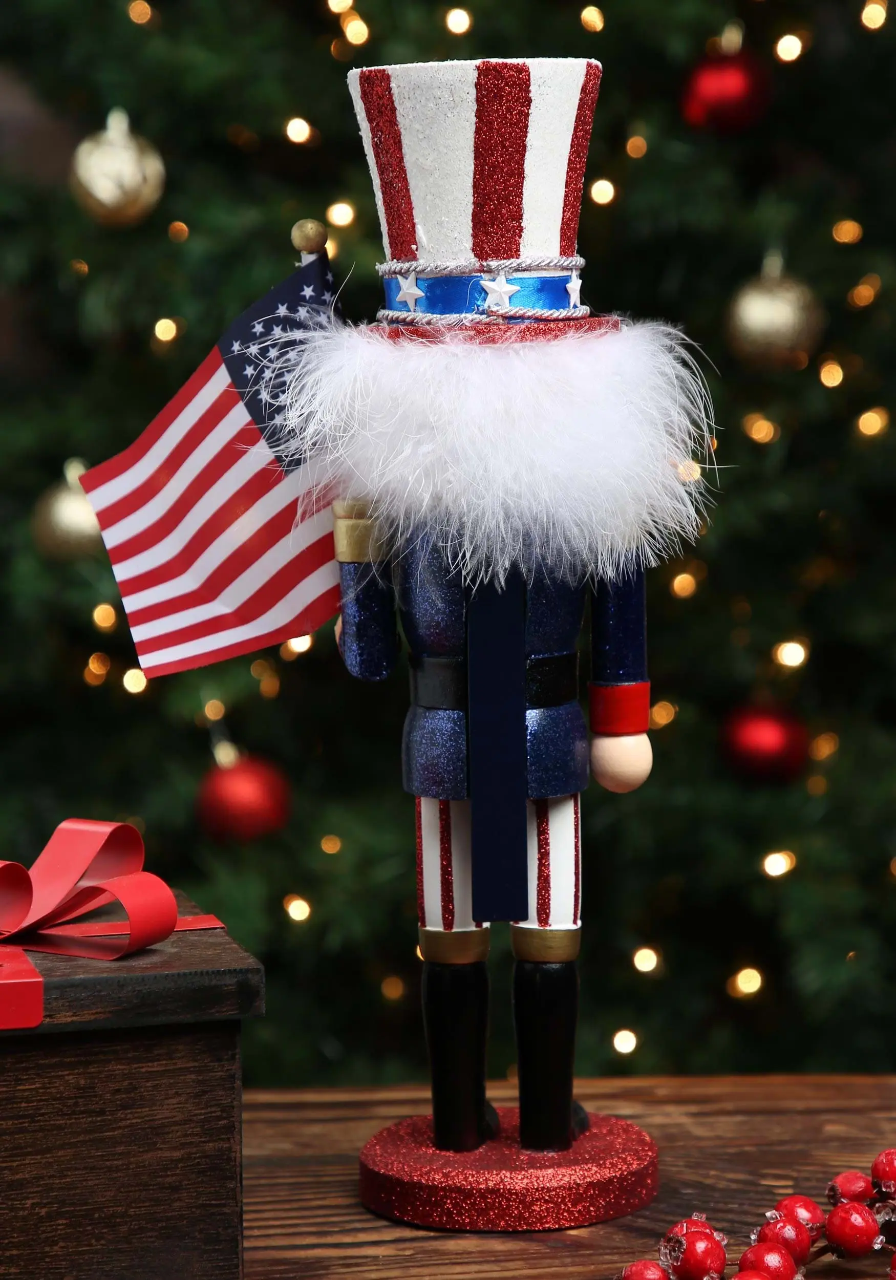 This is a 15″ Wooden Uncle Sam Nutcracker.